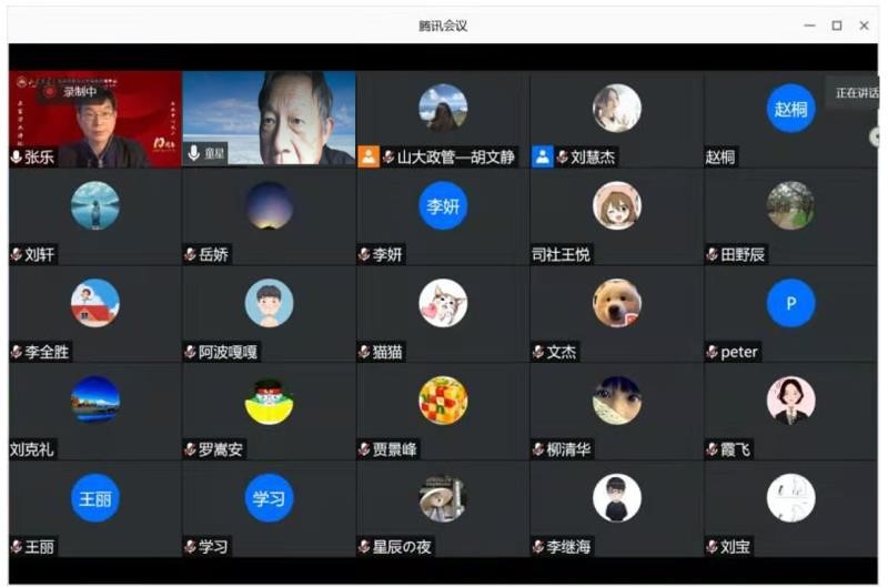 专题分享结束后,张乐教授进行了总结,童星教授的讲解有理有据、深入浅出,展现了扎实的理论功底和敏锐的学术洞察力,对民生概念内涵演进的分析具有较高的理论价值和重要的现实意义,给广大师生认识思考民生建设发展以深刻启发。在互动环节,与会师生积极发言,在长期护理制度、民生建设与政治生活质量等方面踊跃提问,童星教授一一耐心解答,与在线师生进行了良好的互动,本期名家学术讲坛圆满结束。