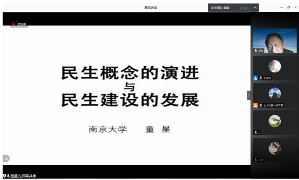 11月11日晚,山东大学生活质量与公共政策研究中心通过在线形式举办了庆祝中心成立十周年名家学术讲坛第二期,特别邀请南京大学政府管理学院童星教授作了主题为“民生概念内涵的演进与民生建设的发展”的学术报告,中心专任研究员张乐教授主持活动,来自山东大学政治学与公共管理学院、哲学与社会发展学院、法学院(威海)等校内单位,以及南京大学、吉林大学、中国海洋大学等多所高校师生共计210余人参加了本次讲坛。