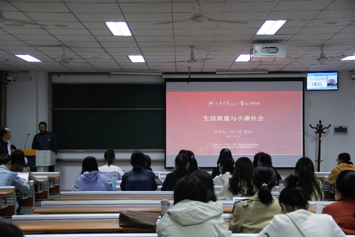 讲座内容主要分为五个部分,分别是生活质量与社会经济发展导论、从“社会指标运动”到“生活质量测量”、客观群体层面的生活质量、主观个体层面的生活质量以及生活质量视角下的经济发展“三阶段论”。周长城教授首先从改革开放40多年的时间我国成为世界第二大经济体等一系列全面建成小康社会过程中取得的经济建设和社会发展成就展开,引出生活质量这一覆盖范围极广的综合概念,并指出“社会发展的终极目的是提高和改善全体人民的生活质量”,其目的在于发展社会经济的同时,体现以人为本的理念,使人们具有很强的幸福感。周长城教授围绕“生活质量研究的最初脉络与社会指标的渊源关系”和“如果将生活质量的核心视为一类指标,那么对此该如何测量”两个问题,分别进行了梳理和分析,总结出社会指标的五个共性特点以及测量生活质量的四个重要观点。接下来,周长城教授细致解释了客观群体层面的生活质量研究的理论基础——可持续发展理论,并回顾了人类发展指数(HDI)、联合国“千年发展目标指数”、“欧洲社会指标体系”等国外客观群体层面的生活质量研究以及国内相关学术研究的现状。周长城教授认为客观条件与主观感受是生活质量的两个不可或缺的重要因素,并指出发展经济只关注财富的积累而不注重个体内心的愉悦和幸福,这样的经济社会发展是有问题的,主观个体层面的生活质量是生活质量研究的未来,同时也是未来小康社会和推进国家治理现代化研究与实践应当考虑的。基于美国发展经济学家罗斯托的经济发展阶段理论,周长城教授从生活质量的视角对我国经济社会发展的阶段性特征进行了分析。