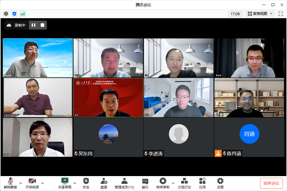 邢占军教授介绍了课题整体进展情况,肯定了近阶段课题组成员取得的研究成果,并就接下来课题推进节奏和课题报告撰写进度做出统筹安排,对课题阶段性成果和结项成果质量提出更高要求。张乐教授结合社会子课题组研究进展,提出经验提炼要建立在大量史实史料基础上,并强调了研究数据和资料使用的规范性。张天舒教授结合政治子课题组研究进展,提出应尽快形成子课题核心观点,以论文发表带动报告撰写。吴东民副教授提出课题推进过程中应形成良好的沟通交流机制,及时通过会议研讨等形式解决课题报告撰写中遇到的问题。吕庆喆副司长强调小康需要通过定性和定量结合来描述,并对定量指标数据获取做出指导和提示。结合各位老师的意见建议,大家围绕前一阶段报告撰写中存在的一些难点和重点问题开展热烈讨论。最后,周长城教授进行了会议总结,强调子课题和总课题核心研究观点提炼的重要性,建议课题组成员平衡好研究学理性与实践性,形成有分量、有亮点的研究成果。