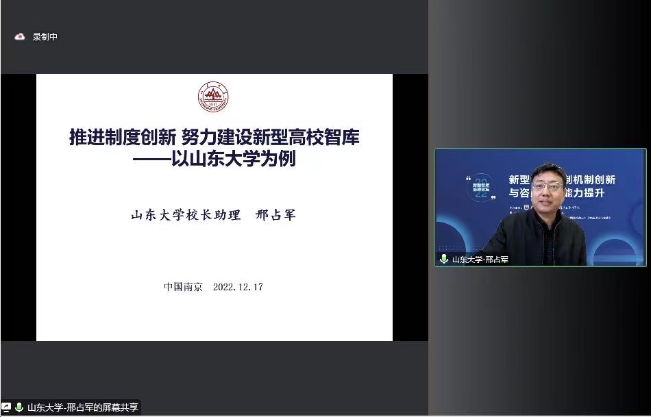 12月17日,由南京大学和江苏省社会科学院主办,南京大学中国智库研究与评价中心承办的2022新型智库治理论坛成功举办。论坛发布了中国智库索引(CTTI)2022年增补来源智库名单,山东大学生活质量与公共政策研究中心成功入选,成为CTTI来源智库,中心主任邢占军受邀参会并做分论坛报告。