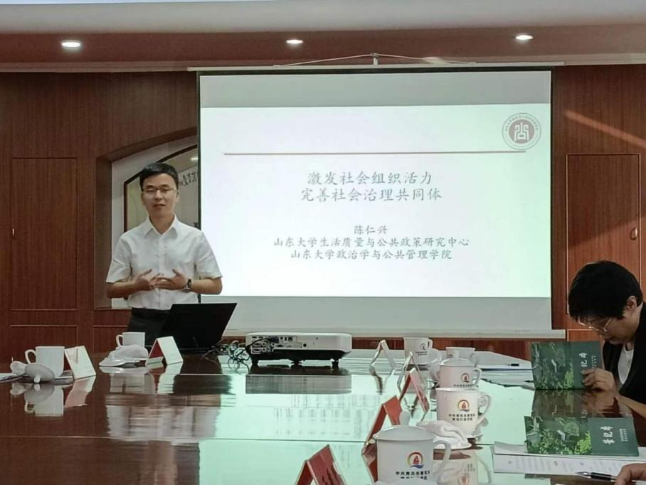 山东大学生活质量与公共政策研究中心副主任李进涛、中心专任研究员陈仁兴受邀参加本次会议。会议期间,陈仁兴做了题为《激发社会组织活力,完善社会治理共同体》的报告,为推动胶东经济圈一体化发展提供智力支持。