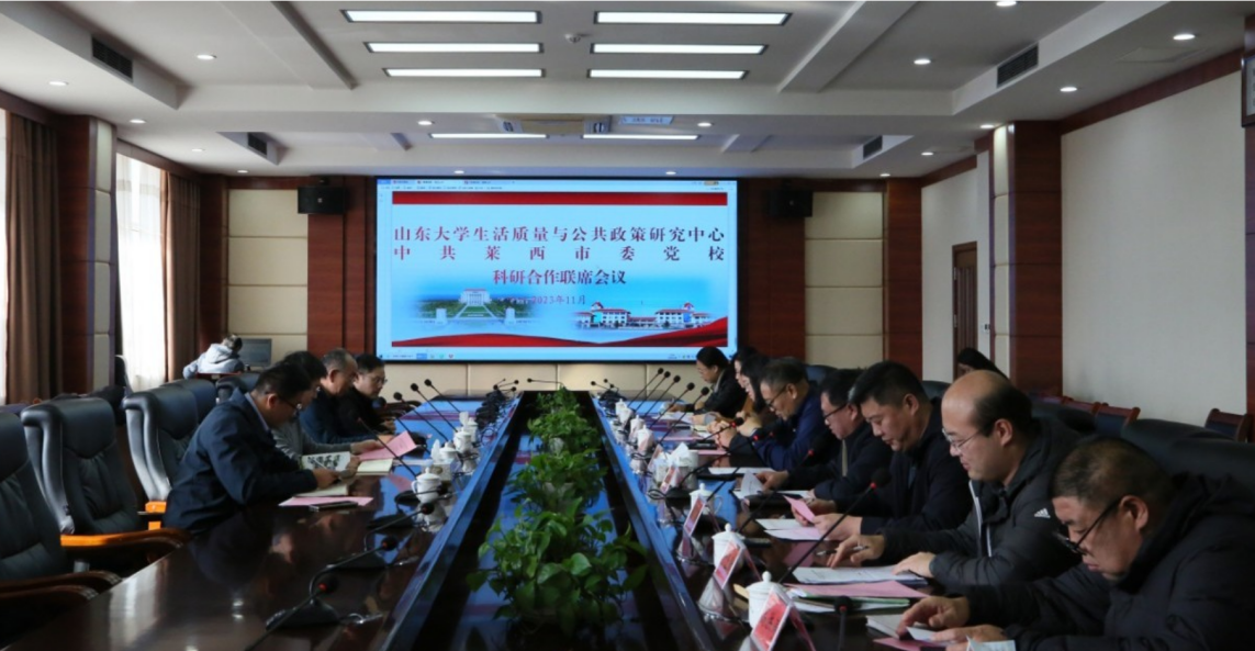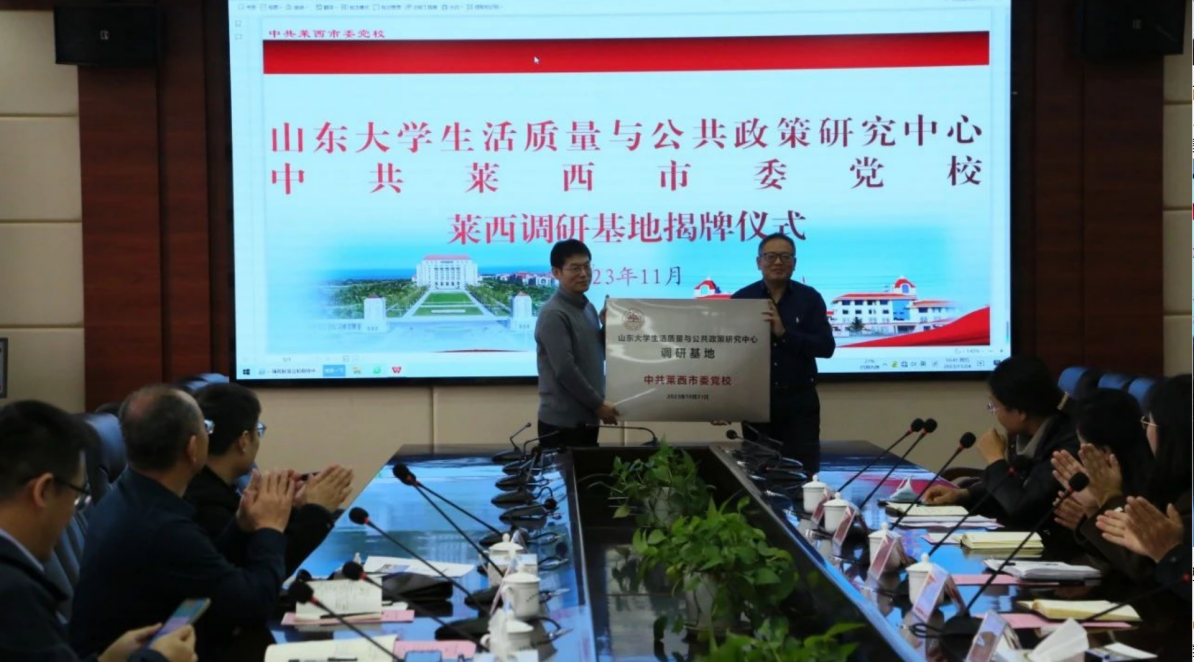 11月24日,山东大学生活质量与公共政策研究中心执行主任张乐,副主任吴东民、李进涛,办公室主任褚雷等赴莱西市委党校举行科研合作协议签署暨调研基地挂牌仪式。莱西市委党校常务副校长张平,副校长耿旭日,范雪梅、高洪涛、熊丽娟等专家学者参与座谈。