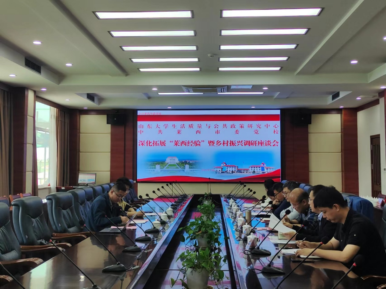 5月8日,山东大学生活质量与公共政策研究中心专任研究员李进涛带队赴莱西市开展“深化拓展莱西经验暨乡村振兴”主题调研。中共莱西市委党校常务副校长耿旭日、副校长李晓阳、理论部主任及莱西市农业农村局、市自然资源局、市人力资源和社会保障局、南墅镇相关业务负责同志等参与座谈交流。