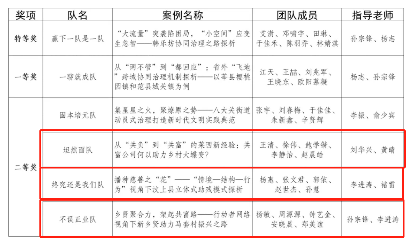 近日,“第四届华北地区高校公共管理硕士专业学位研究生(MPA)案例大赛”在山西太原完满落幕,中心研究员刘华兴、黄晴指导的案例《从“共负”到“共富”的莱西新经验:共富公司何以助力乡村大蝶变?》,李进涛、褚雷指导的案例《播种慈善之“花”——“情境-结构-行为”视角下汶上县立体式助残模式探析》,李进涛等指导的案例《乡贤聚合力,架起共富路——行动者网络视角下新乡贤助力马套村振兴之路》均荣获二等奖。