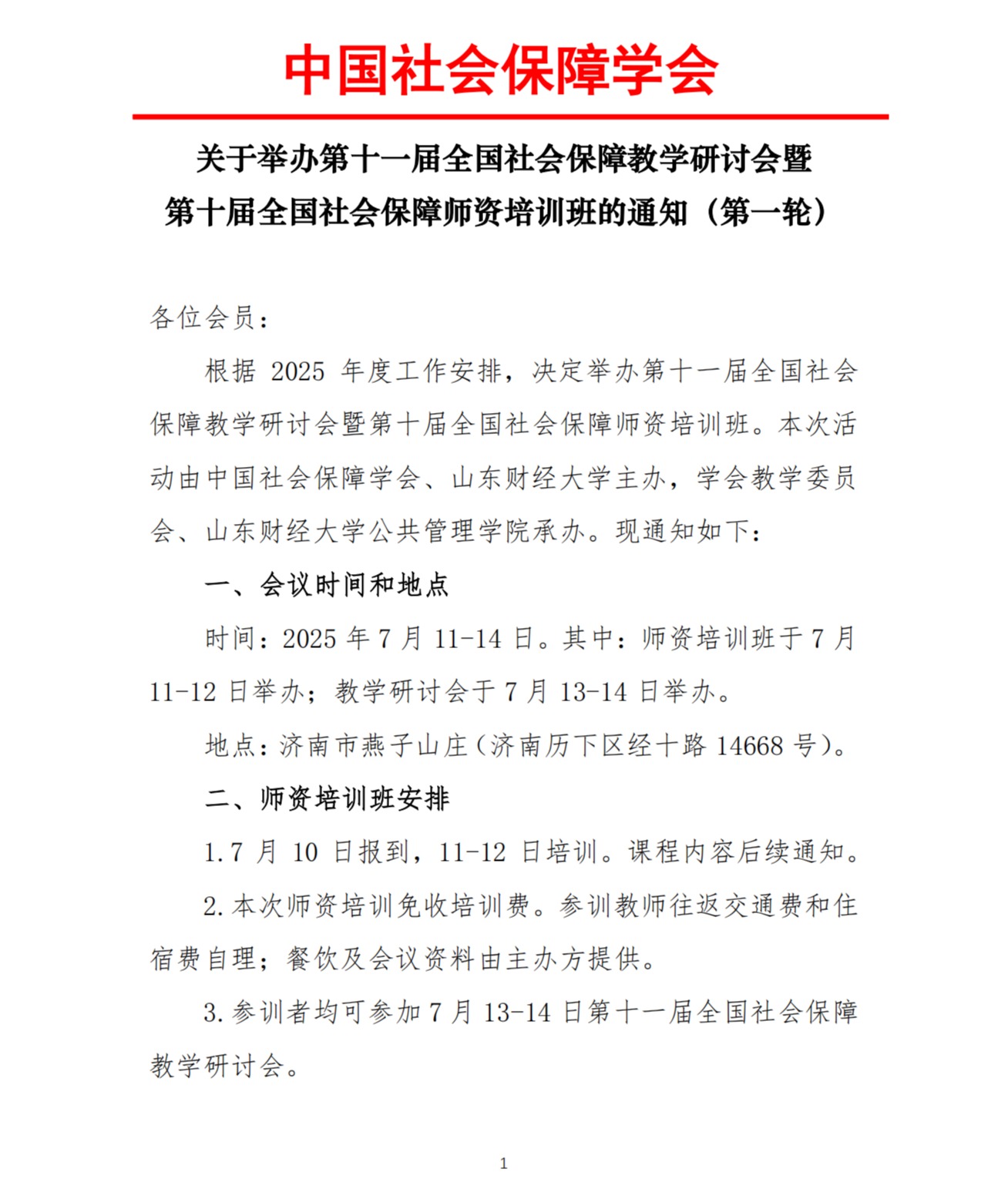 关于举办第十一届全国社会保障教学研讨会暨 第十届全国社会保障师资培训班的通知(第一轮)
